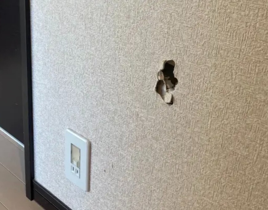 ▲壁に開いた穴。施工前の状態では、補修の難易度も高く見える。