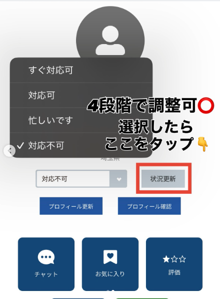 マイページの状況を「忙しいです」もしくは「対応不可」に設定。